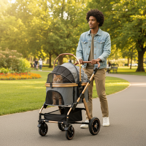 Poussette pour chat avec cabine amovible